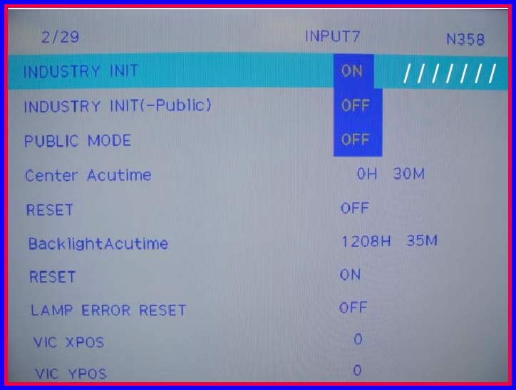 2. Press “>” button on the remote control to enter the LCD TEST PATTERNS