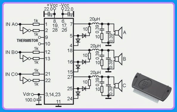 STK290-100 - STK290-130 Triple class-D power audio amplifier – typical circuit diagram