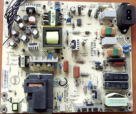 Malfunctions of the power module can be expressed in different ways, for example, PHILIPS 26PFL3606H / 12 does not turn on at all and the control lamps on its front panel do not light up and do not blink, there are no signs of operability. When diagnosing and repairing the power supply, first of all, replace the swollen filter capacitors of the secondary rectifiers and check the fuse and, if it is broken, it is necessary to identify the cause. Often in such cases, an avalanche (thermal) breakdown is detected in the power semiconductor elements of the module - rectifier diodes or power switch.